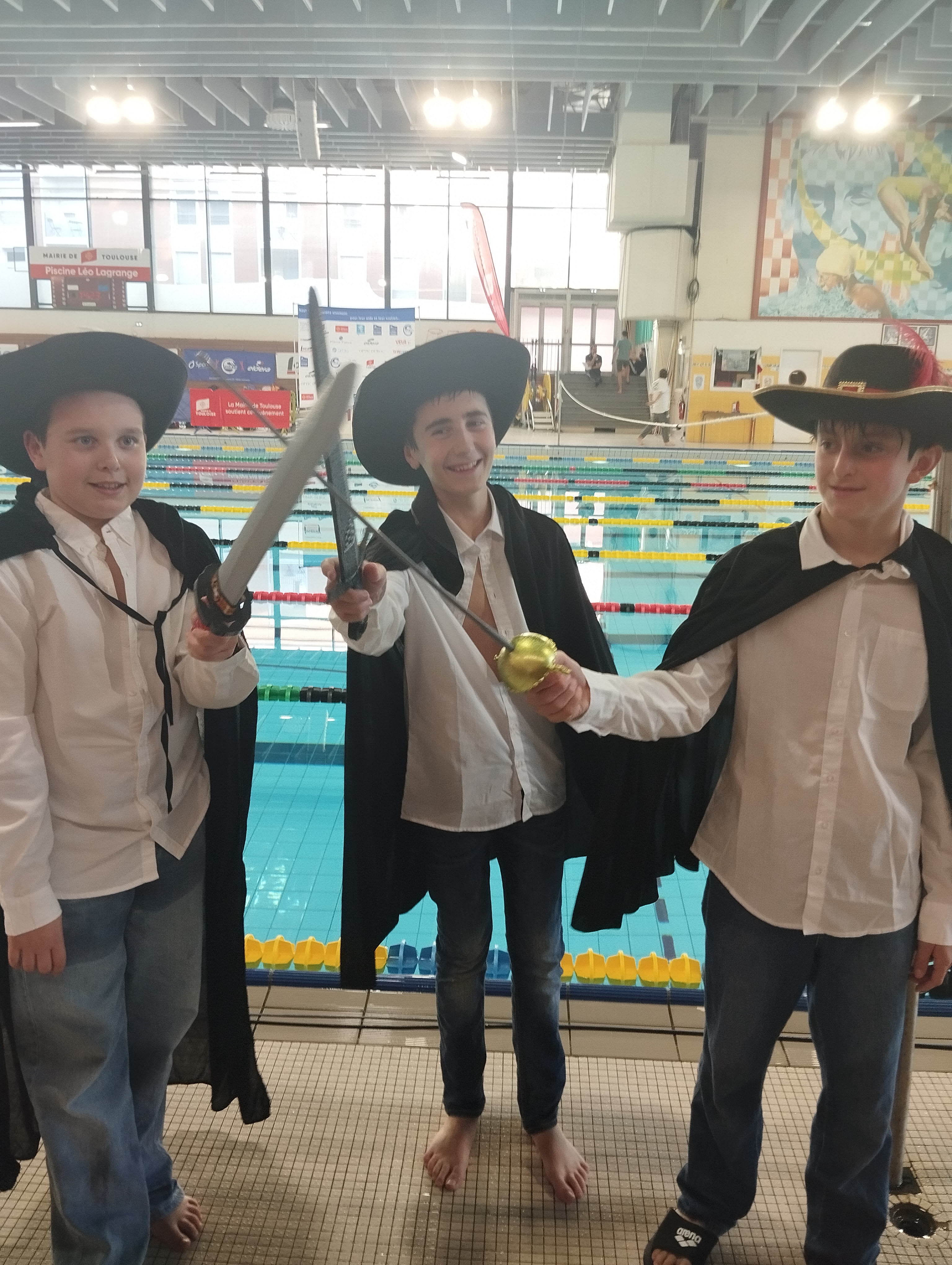Après avoir défilé avec l'ensemble des clubs, nos trois Mousquetaires ont obtenu de très beaux résultats, avec notamment Jules qui, 4ème sur 50 papillon à 3 centièmes du podium, et Jean qui lui aussi 4ème sur 50 dos, ont bien failli créer le hold-up du jour! Ils étaient loin du podium sur le papier, prouvant ainsi que tout est possible sur une course d'un jour!
